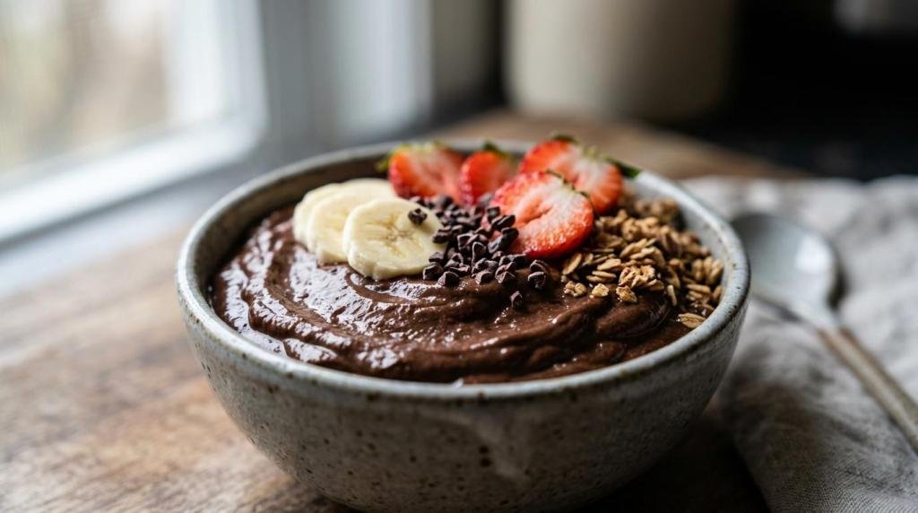 A chocolate smoothie bowl works in more than one lane. It can be breakfast, an afternoon snack, or a lighter dessert. The easiest way to change its mood is through toppings.