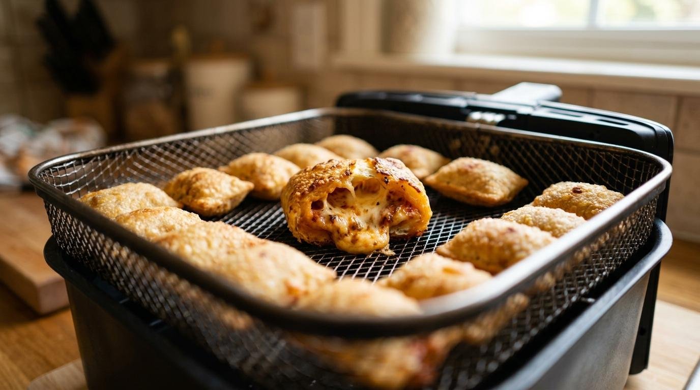 First, it’s absurdly quick. Preheat for a few minutes, cook for a few more, and suddenly you’re holding a tray of golden little pizza pockets like the kitchen wizard you always knew you could be. No sheet pan. No long wait. No sad, floppy texture.